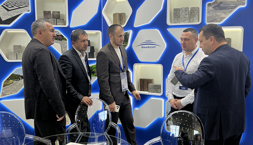 На стенде компании были представлены коллекции тротуарной плиты, в том числе дренажное решение «Эко-форма», сочетающее эстетику, долговечность и экологическую функциональность. Разработка позволяет снижать эффект «теплового острова» и обеспечивать питание зелёных зон через дренажные швы.