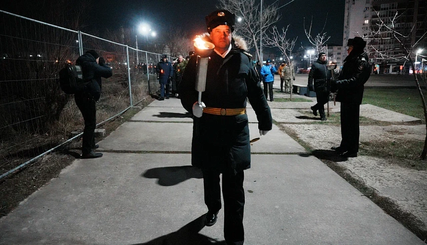 От факела, доставленного в этот памятный вечер с площади Героев, у стен мемориала «Малая земля» был зажжен огонь Вечной славы.