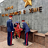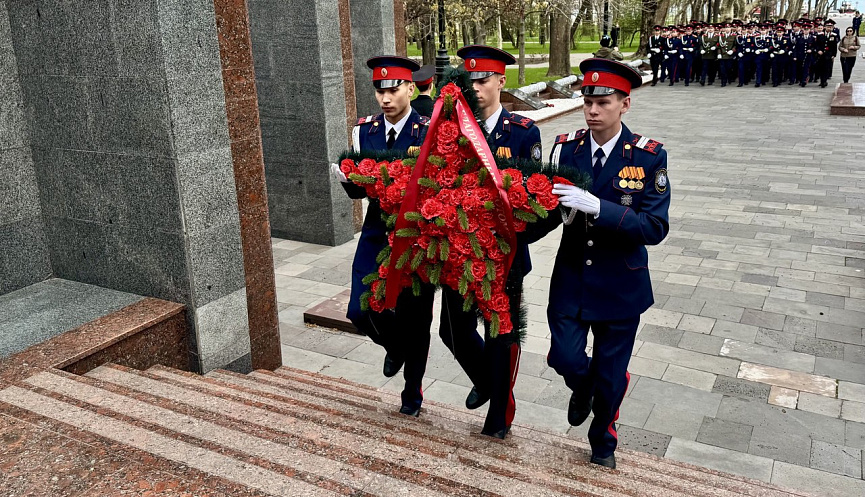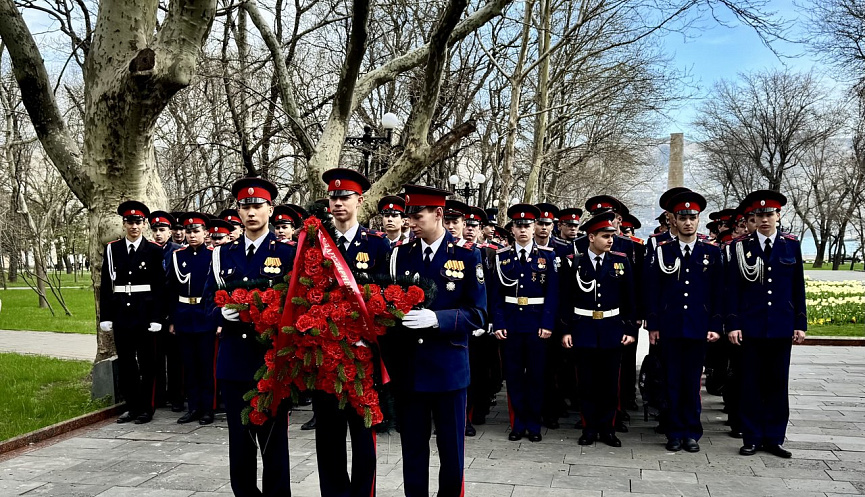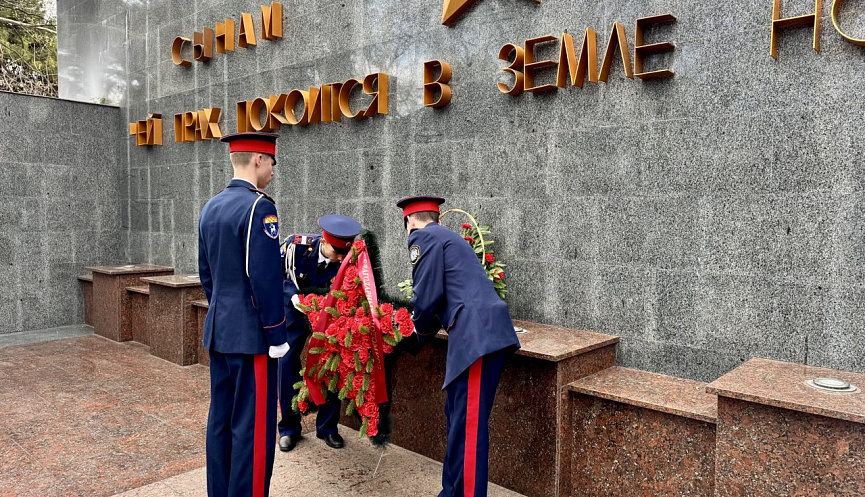 Начался визит с посещения самого святого для всех новороссийцев места – площади Героев. У Вечного огня кадеты прошли к мемориальной стене «Сынам Отечества, чей прах покоится в земле Новороссийска», к которой возложили венок Воинской Славы и алые гвоздики. Минутой молчания почтили казачата память павших защитников города.