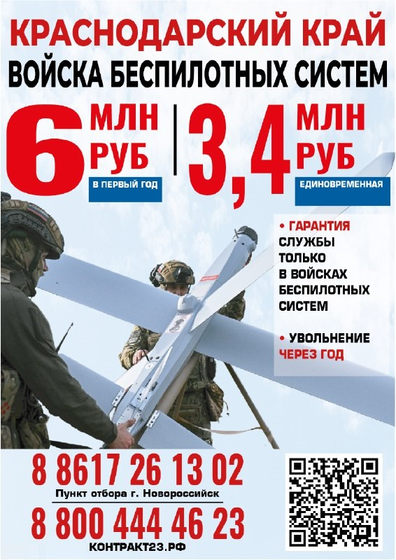 Только за первый год службы в зоне СВО – после заключения контракта от любого муниципалитета Краснодарского края – военнослужащие получат 6 млн рублей.