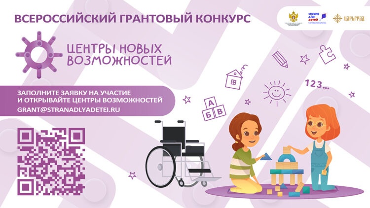 Всероссийский грантовый конкурс «Центры новых возможностей», направлен на помощь организациям в создании и развитии сети центров дневного пребывания для детей с инвалидностью и их семей. Мероприятие приурочили к Году семьи.