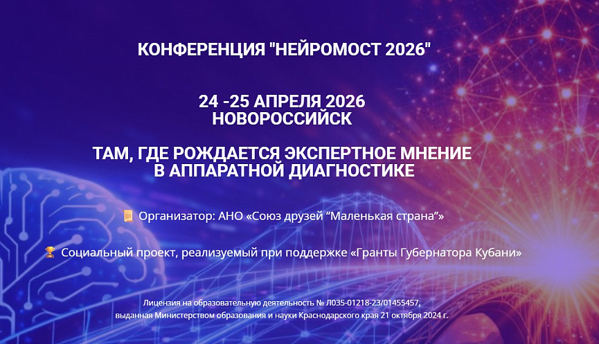 Во Всероссийской конференции «Нейромост: от диагностики к развитию», которая пройдёт 24–25 апреля 2026 года, в Новороссийске можно участвовать очно (ограниченное число мест), а также онлайн (трансляция + запись).