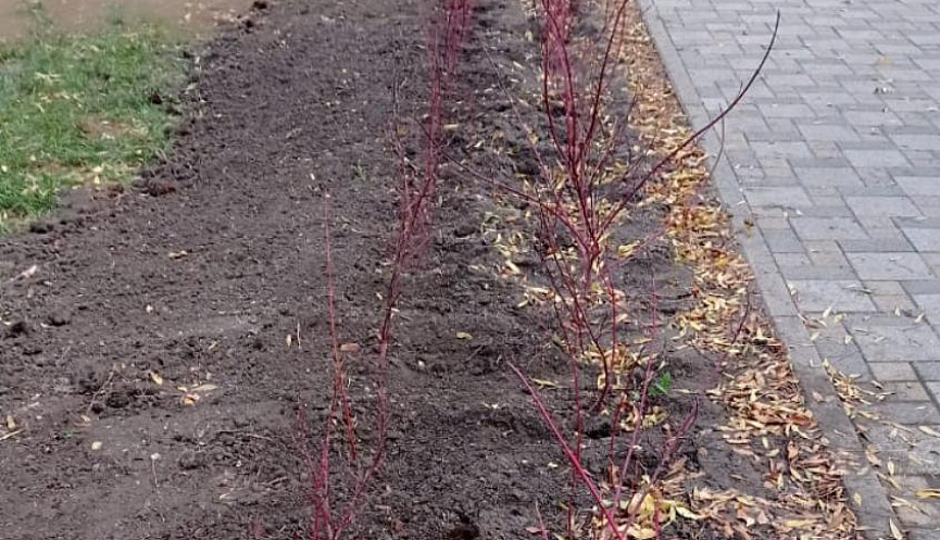 В рамках компенсационного озеленения рабочие МБУ «Центр озеленения и благоустройства» высадили кустарники породы дёрен, создав живую изгородь на территории парковой аллеи по улице Советов.