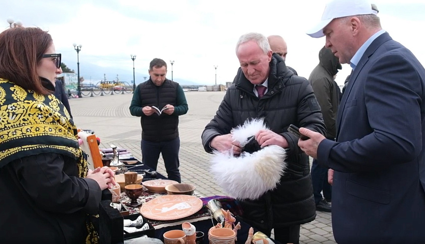 Одной из главных локаций события стала Форумная площадь, где развернулась яркая передвижная выставка народного творчества, представляющая уникальные изделия народных мастеров. Юные патриоты Новороссийска – активисты «Молодой гвардии», «Движения первых» и «Юнармии» – создали особую атмосферу, торжественно развернув копию Знамени Победы размером 50 на 20 метров.