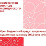Министерством финансов Краснодарского края рассмотрено и одобрено обращение о выделении бюджетного кредита на сумму 500,0 млн рублей на покрытие временного кассового разрыва, возникшего при исполнении бюджета города со сроком погашения в текущем году.