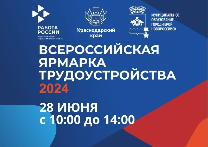 - В Новороссийске 28 июня состоится федеральный этап Всероссийской ярмарки трудоустройства «Работа России. Время возможностей»