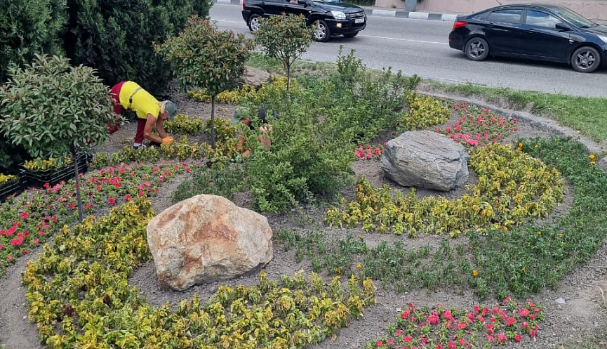 Некоторые цветники занимают большое пространство, такие как квадраты на выезде из города в сторону Кабардинки, угол напротив Санитарно-эпидемиологической службы или «Солнце» по ул. Железнодорожная Петля. Времени на одну такую клумбу уходит много, необходимо выдержать четкие линии и сохранить размеченный рисунок.