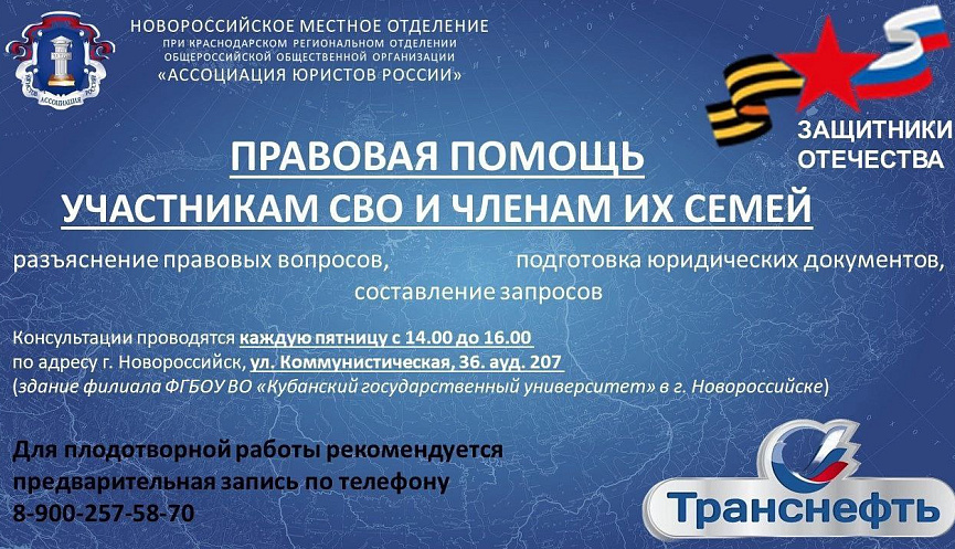 Ведущие практикующие юристы города-героя Новороссийска оказывают бесплатную правовую помощь участникам СВО и членам их семей.