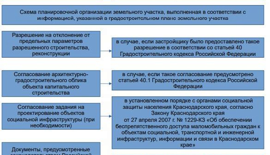 3. Отсутствие согласования задания на проектирование объектов социальной инфраструктуры в установленном порядке с органами социальной защиты населения Краснодарского края, предусмотренного Законом Краснодарского края от 27 апреля 2007 г. № 1229-КЗ «Об обеспечении беспрепятственного доступа маломобильных граждан к объектам социальной, транспортной и инженерной инфраструктур, информации и связи в Краснодарском крае».