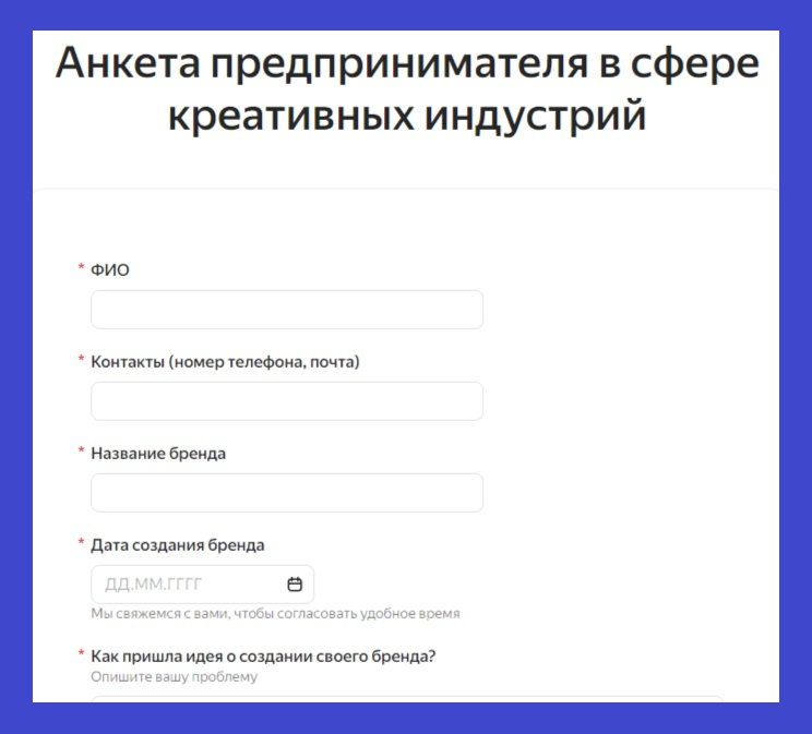 Анкета предпринимателя в сфере креативных индустрий