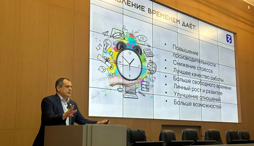 Политолог, психолог, общественный деятель, лектор Российского общества «Знание» Геннадий Гасанов участникам семинара «Эффективное управление временем» рассказал о современных техниках тайм-менеджмента и планирования, методах приоритизации задач и борьбы с прокрастинацией, а также представили инструменты для повышения личной эффективности и оптимизации рабочих процессов.