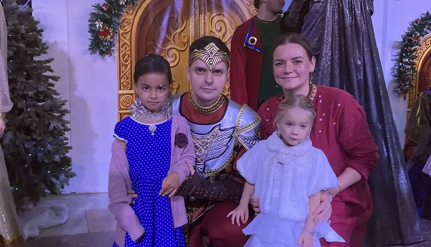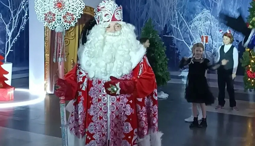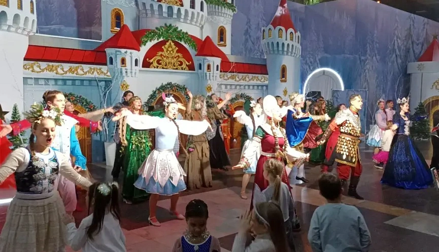 Дед Мороз, Снегурочка и герои русской сказки встречали своих гостей в украшенном зале, создавая новогоднее настроение и ощущение праздника.