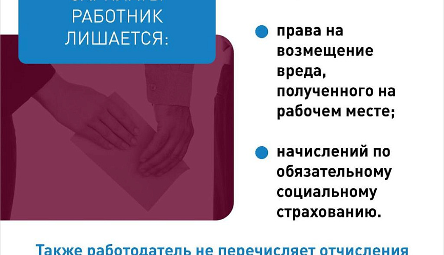 Обращаем внимание на последствия при трудоустройстве без заключения трудовых договоров. Это является серьезным нарушением трудового и налогового законодательства, которое влечет за собой административную ответственность работодателя. При неформальной занятости работники получают «серую» заработную плату и практически лишены возможности социальной и правовой защиты.