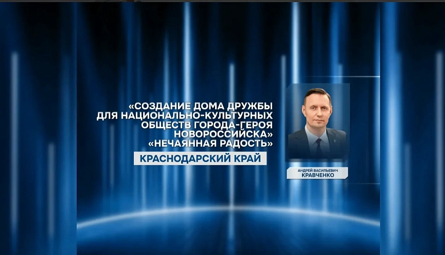 Глава Новороссийска Андрей Кравченко в своих соцсетях сообщил, что проект «Создание Дома дружбы для национально-культурных обществ города-героя Новороссийска» стал финалистом III Всероссийской муниципальной премии «Служение» в номинации «Единство народов России — сила страны».
